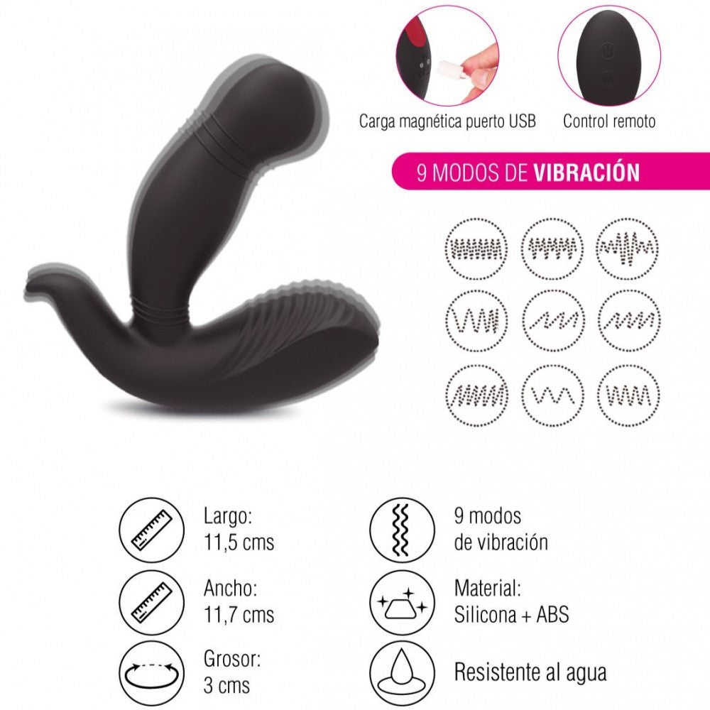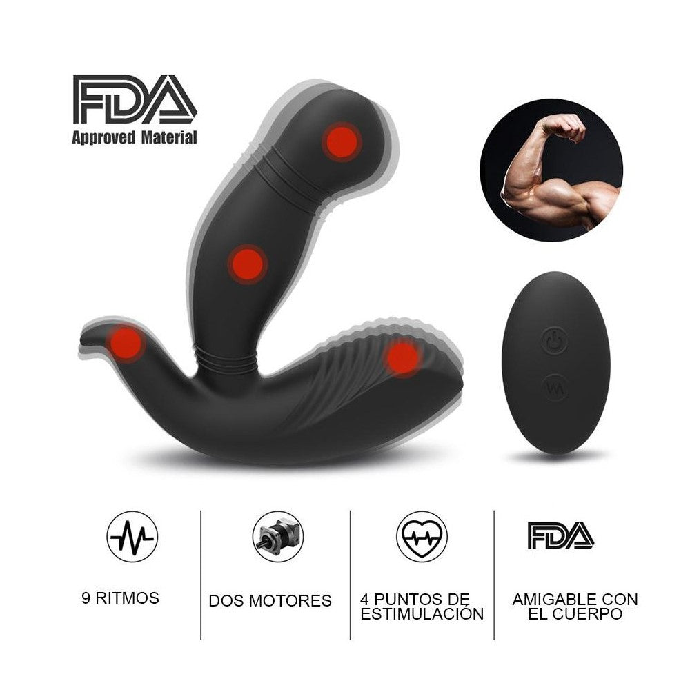 Estimulador prostático con un diseño único que estimulará el perineo, ano y próstata con sus dos potentes motores. Puede ser manipulado a control remoto.
