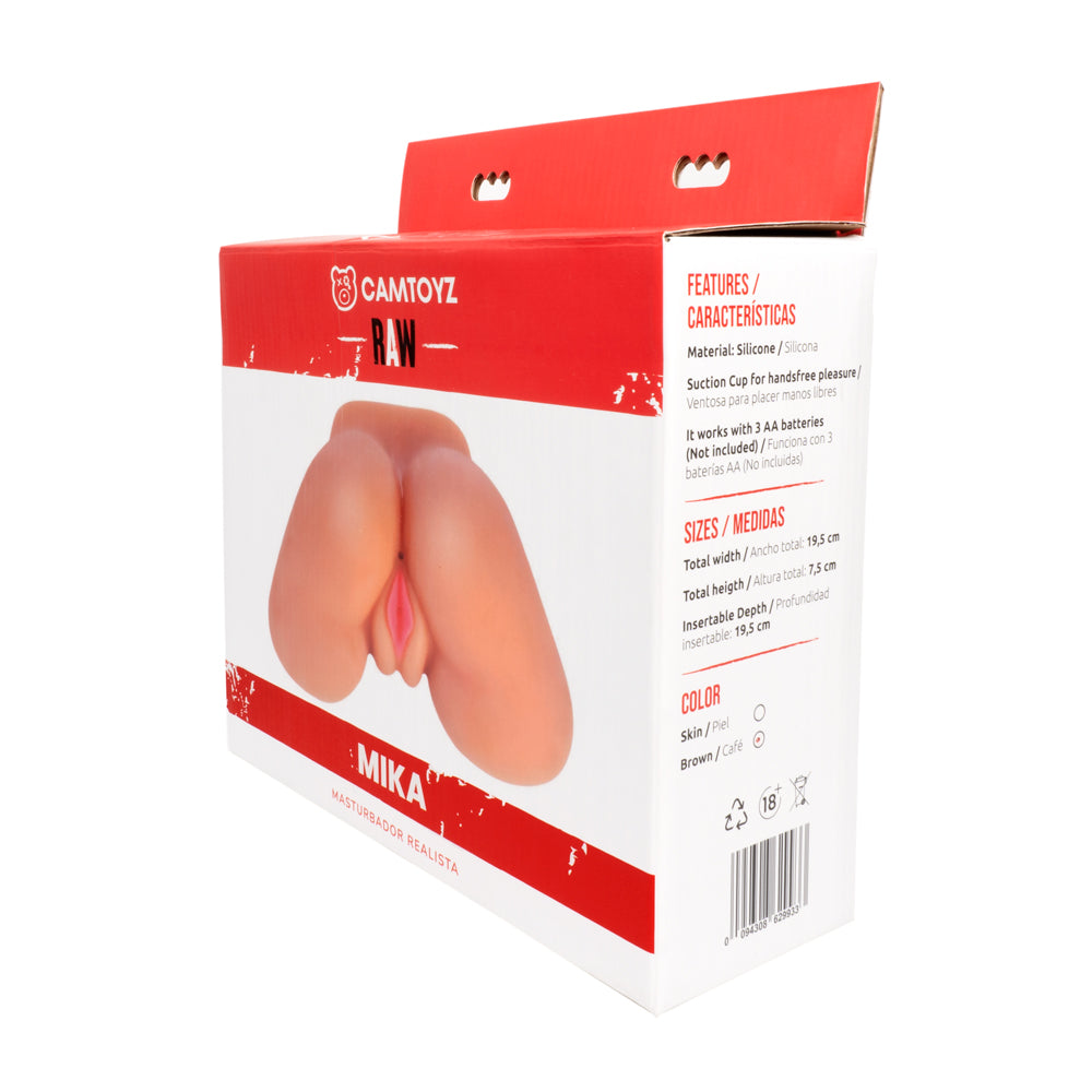 Mika es un masturbador masculino realista moldeado desde el cuerpo de una modelo real. Cuenta con una bala vibradora y control remoto para mayor excitación. Está diseñado con las más estrictas normas de calidad. Su interior está hecho de un material especial y tiene orificio anal y vaginal para llevar la masturbación masculina a otro nivel.