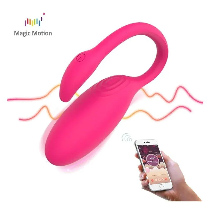 Vibrador clitorial y de penetración inalámbrico manejado por medio de aplicación móvil. Resistente a salpicaduras de agua y controlado en tiempo real.