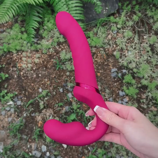 No importa si eres lesbiana, bisexual o indecisa, disfruta de la penetración con vibraciones compartidas que se pueden ajustar a tu gusto y a tu pareja.