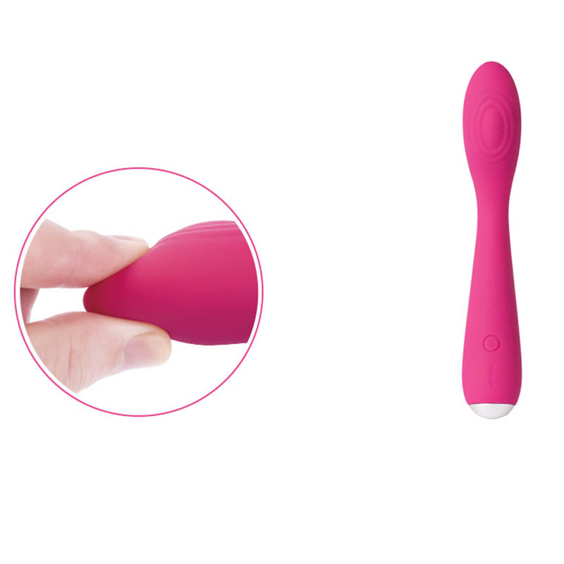 Este hermoso y sutil vibrador está diseñado especialmente para la estimulación clitorial y de punto G, tiene una figura alargada, una cabeza flexible y ultra suave que es muy cómoda de usar por su facilidad de deslizarse dentro por su forma de cuchara, con un ángulo perfecto para dar una perfecta estimulación gracias a su gran motor y a su textura de 3 anillos ovalados que te llevará a vivir una experiencia muy placentera.