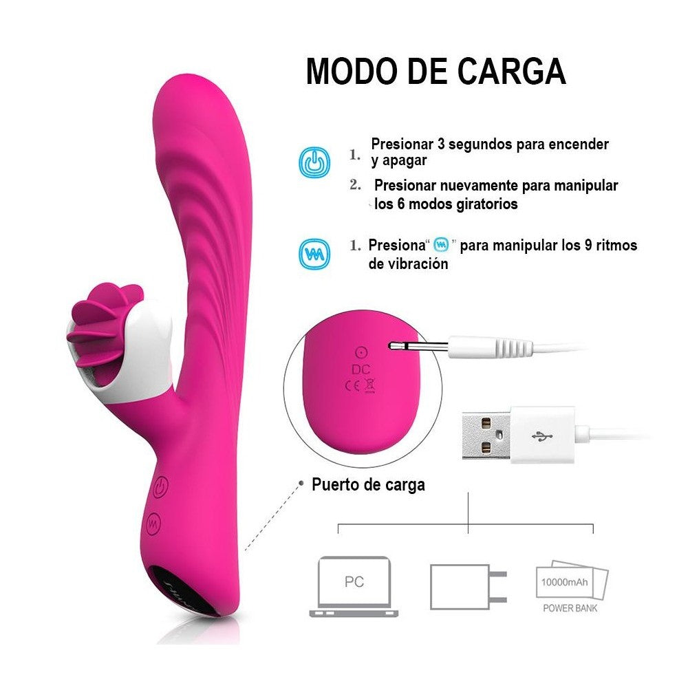 Vibrador diseñado para estimulación del punto G y unas pequeñas lenguas para realizar sexo oral.